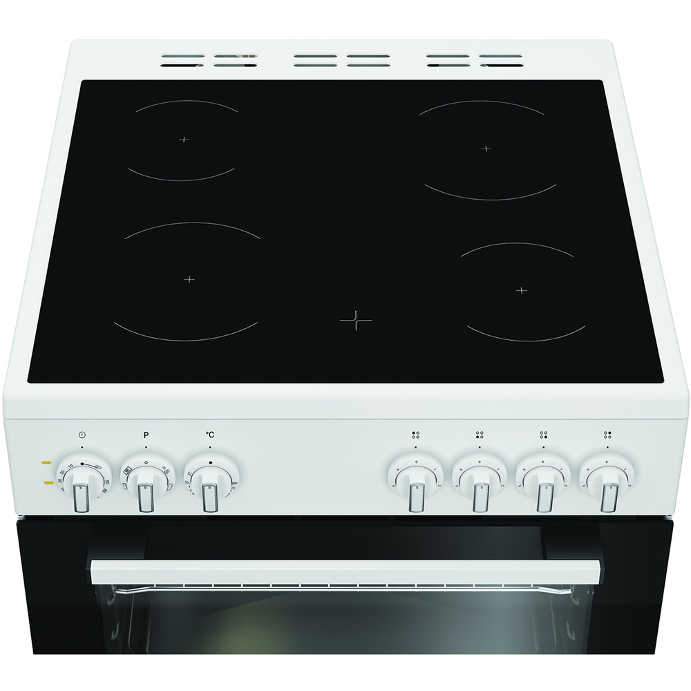 Opremljen sa četiri električne grijaće zone i pećnicom zapremine 59 litara, pruža sve što je potrebno za svakodnevno kuhanje i pečenje. Multifunkcionalna rerna omogućava ravnomjerno pečenje zahvaljujući ventilatoru i gornjem/donjem grijaču, dok staklokeramička površina omogućava brzo zagrijavanje i jednostavno čišćenje.